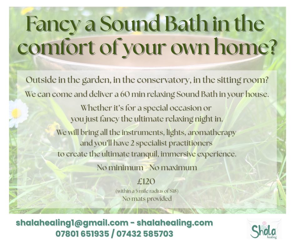 Whether in your house, a venue, garden, under a gazebo the choice of where we can deliver our mesmerizing Sound Baths and Sound Journeys are limitless.