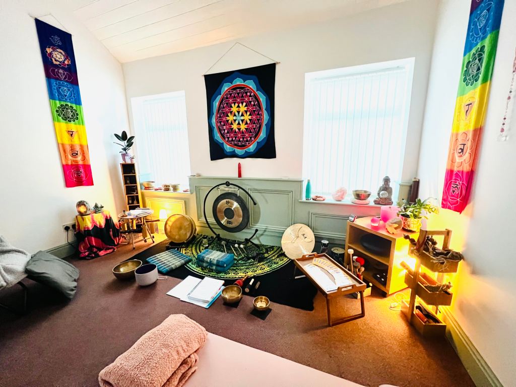 In Dronfield, sessions are held at Studio 16, Riverside Studios, Mill Lane, Dronfield, S18 2XL This is our dedicated studio, it is an intimate space, quiet location and a beautiful ambiance. Mats, blankets and eye masks are provided. There is plenty of parking too, with a private carpark (details will be emailed to you upon booking). Please be aware there are some steps to access the studio. We’re sure you’ll love it as much as we do!