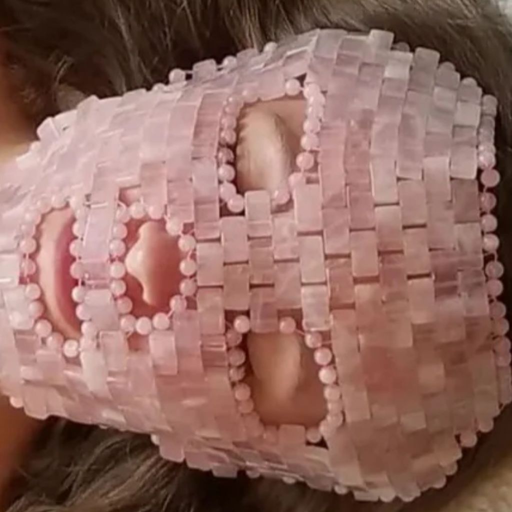 - Reduces puffiness and soothes the skin with a calming weighted rose quartz mask